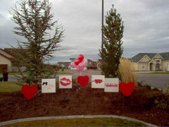 What better way to show those you love what they mean to you than by plastering their front yard or place of business with bright decorative Valentine’s signs! One or two won’t due, ONE DOZEN will be GRAND!
